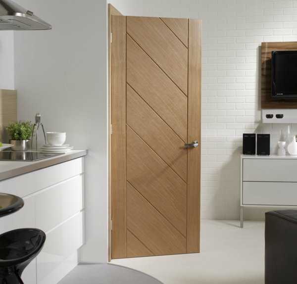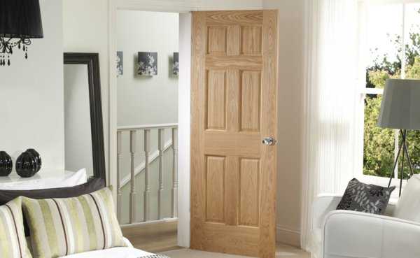 Изделия различают по назначению, количеству створок и материалу: применение дуба или ясеня в основе полотна позволяет добиться разных оттенков. Любовью пользуется двери из белёного дуба в интерьере квартире. Как видно на фото ниже, это действительно интересный образец.