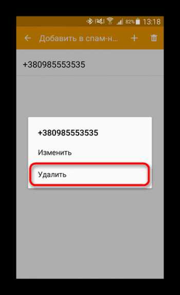 2. Если среди номеров чёрного списка есть нужный, нажмите на него и подержите палец. Во всплывающем меню выберите «Удалить».