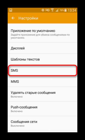 3. В настройках поищите пункт «SMS» и зайдите в него.