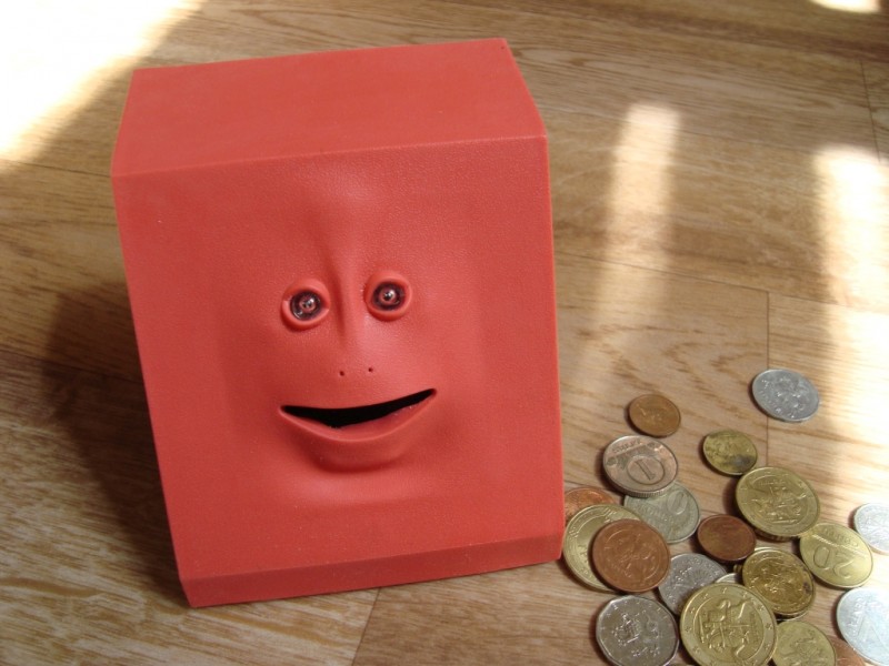 Жующая копилка ест монеты и курит!