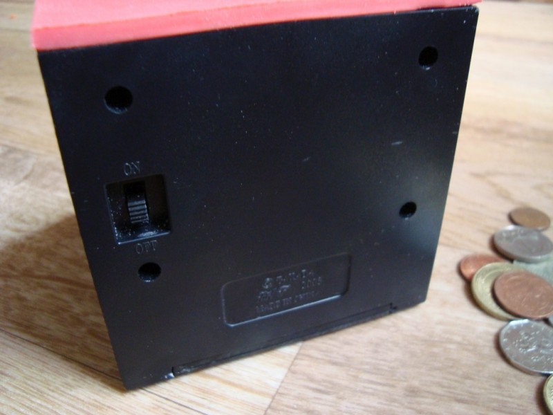 Как я уже как-то рассказывала про эту чудесную вещицу ^^ Суть заключается в следующем: вы кладете монетку на специально отведенное место, нажимаете и копилка утаскивает монетку к себе.