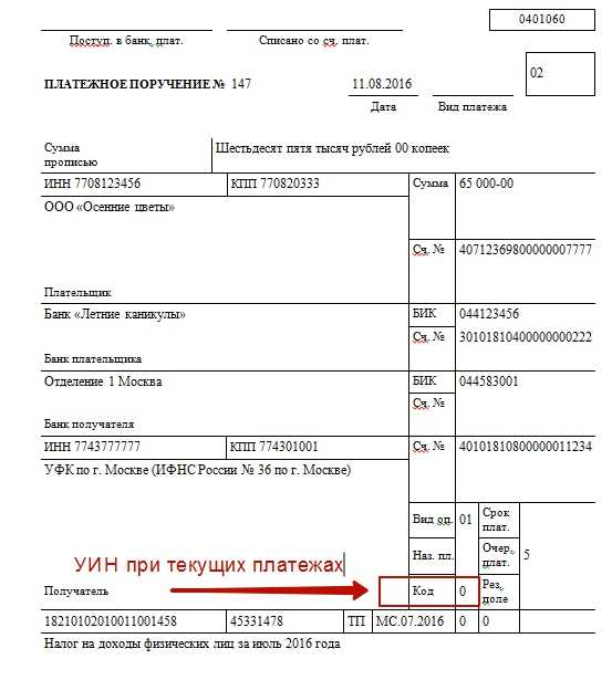 Также см. «УИН в платежных поручениях: образец».