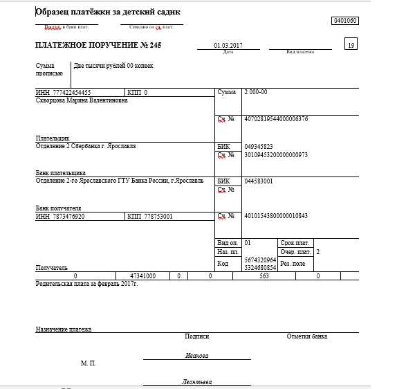 Образцы платежек