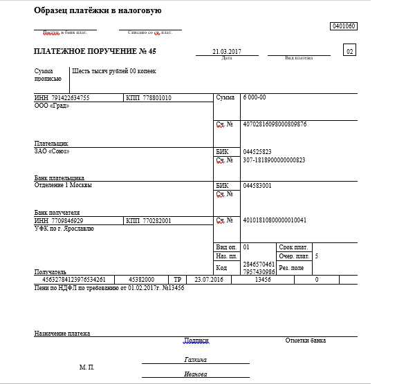 Пример платежки в налоговую
