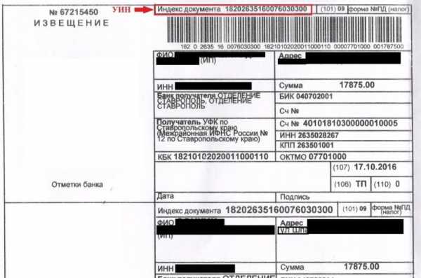 Таким образом, УИН в 2018 году и в последующем физические лица просто переносят из налогового уведомления, пришедшего по адресу регистрации или в личный кабинет на официальном сайте ФНС России www.nalog.ru.