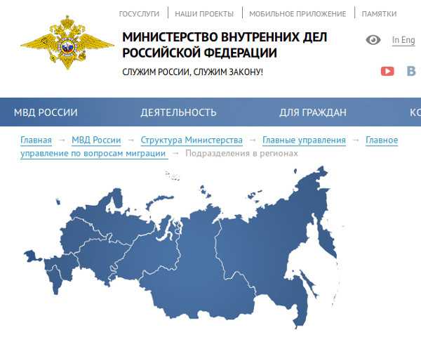 На первом шаге, выберите удобное вам отделение ГУВМ МВД. Все отделения можно найти на сайте МВД