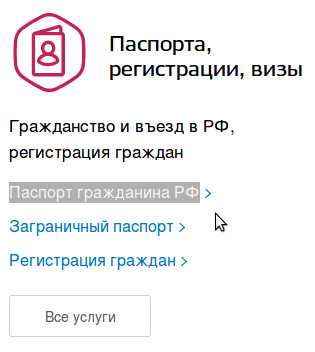 Нажимаем на него и попадаем на страницу доступных услуг, которые связаны с паспортом РФ: