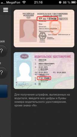 Водительское удостоверение: ? Для поиска штрафов, выписанных водителю инспекторами ГИБДД