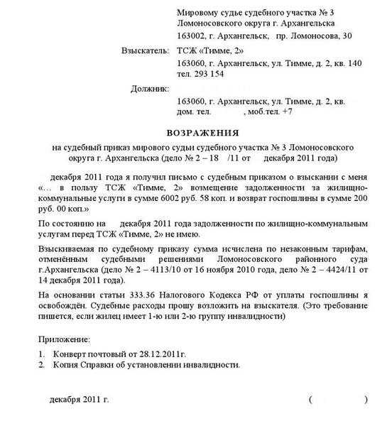 Возражение на судебный приказ о взыскании задолженности по кредиту