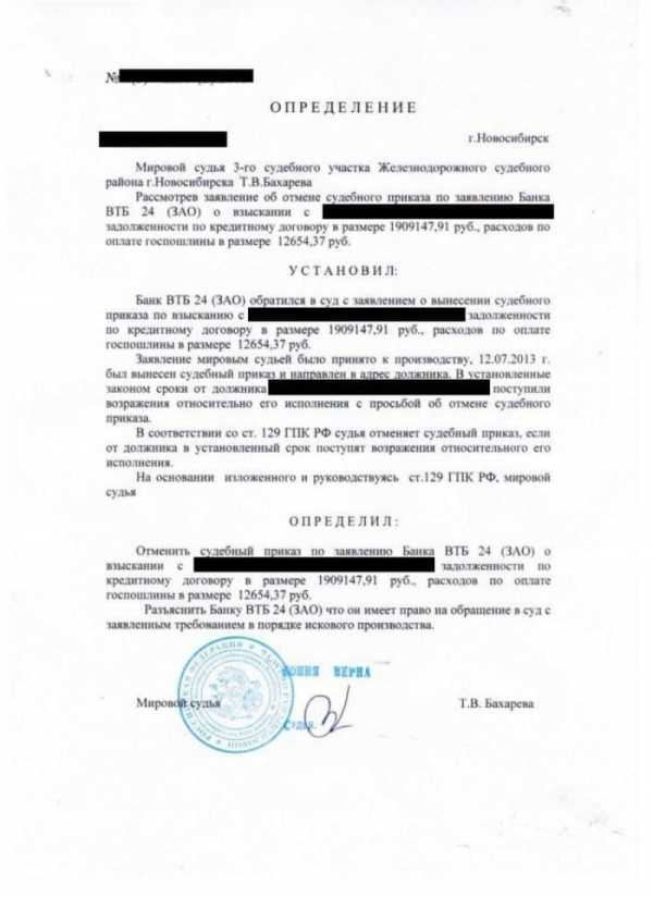 Как отменить судебный приказ о взыскании долга по кредиту?