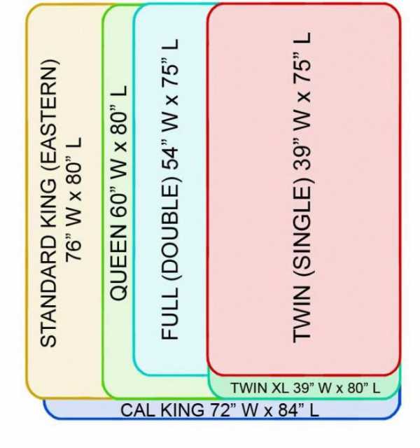 Отечественные размеры полуторной кровати ближе к европейским двуспальным кроватям с шириной 140 — 160 см. Если же сравнивать с кроватями из Америки, то ближе всего по габаритам будет модель Full (иначе, Double). Ее ширина составляет 137,2 см, а длина – 190 см. У модели Queen более комфортные, «королевские», размеры: 152,4 см ширины и 203,2 см длины.