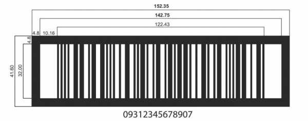 - минимальное расстояние от верхнего края цифр до нижнего края штрихов — 0,165 мм (рекомендуемое — 0,33 мм).