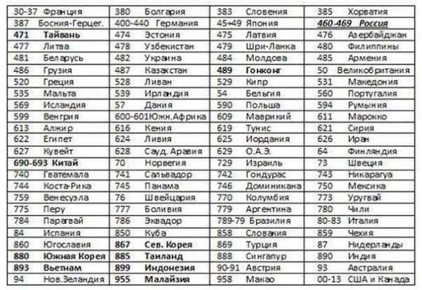 - первые 2-3 цифры — региональный код (префикс) страны, где зарегистрирован данный номер;