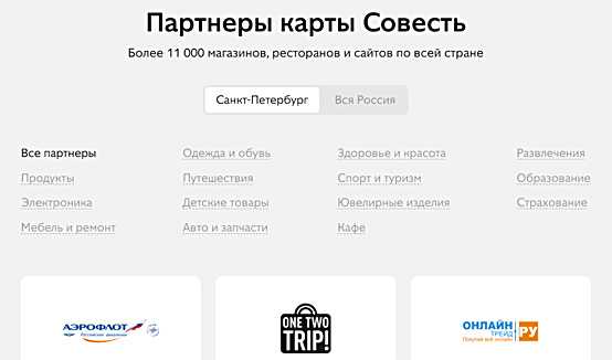 Партнёры карты «Совесть» — это обычные магазины одежды, косметики, электроники, ювелирных изделий, АЗС, питания и др.