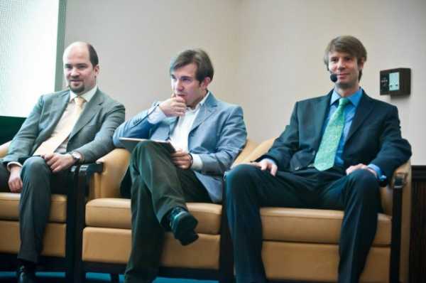 Игорь Виттель, телеведущий РБК-ТВ, модератор дискуссии; Борис Ким, основатель Qiwi; Алексей Левченко, председатель правления «Ренессанс Кредита»