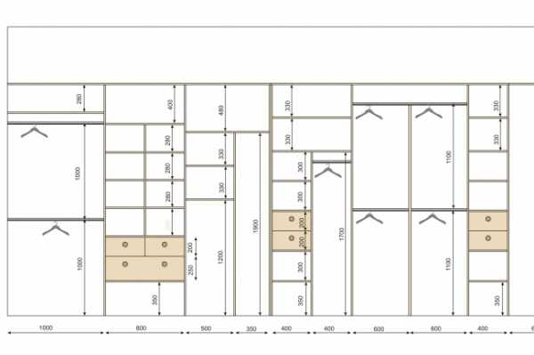 После определения месторасположения гардероба можно приступать к его монтажу. Подготовительный этап – это создание чертежа где указываются все размеры и нюансы конструкции.