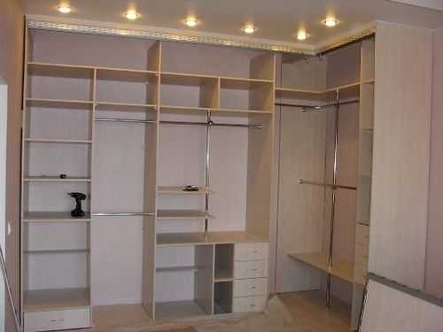 Для гардеробной можно выделить как один угол, так и часть комнатыЕсть несколько вариантов конструкции: