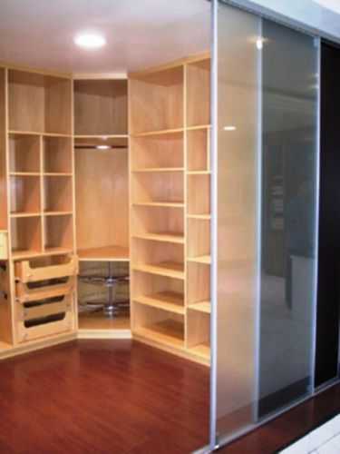 Тщательное внимание следует уделять выбору мебельного гарнитура для угловой гардеробнойВариантов маленьких гардеробных несколько: