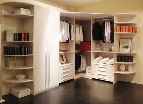 Помните, что обустраивая угловые гардеробные комнаты, лучше отдать предпочтение открытым полкам со свободным доступом.