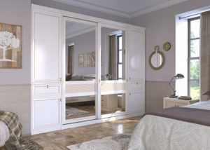 Модель представляет собой изделие, состоящее из двух шкафов-купе. Это могут быть стандартные конструкции, объединенные в один мебельный атрибут. Собрать элементы воедино способен каждый человек. Для этого необходимо подобрать два оптимальных шкафа и состыковать их друг с другом. Это хорошая альтернатива устаревшим горкам, которые ранее устанавливались в спальню и гостиную.