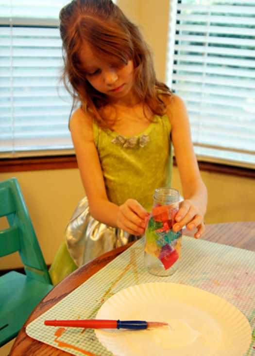 ΠΠΎΡΠΏΠΎΠ»ΡΠ·ΠΎΠ²Π°Π²ΡΠΈΡΡ ΠΏΡΠΎΡΡΡΠΌΠΈ ΠΏΠΎΠ΄ΡΡΡΠ½ΡΠΌΠΈ ΡΡΠ΅Π΄ΡΡΠ²Π°ΠΌΠΈ, ΠΈΠ· ΠΎΠ±ΡΡΠ½ΠΎΠΉ ΡΡΠ΅ΠΊΠ»ΡΠ½Π½ΠΎΠΉ Π²Π°Π·Ρ ΠΌΠΎΠΆΠ½ΠΎ ΡΠ΄Π΅Π»Π°ΡΡ ΠΌΠΎΠ΄Π½ΡΠΉ ΠΈ ΡΡΠΈΠ»ΡΠ½ΡΠΉ ΡΠ»Π΅ΠΌΠ΅Π½Ρ ΠΈΠ½ΡΠ΅ΡΡΠ΅ΡΠ°. ΠΠ»Π°Π²Π½ΠΎΠΉ ΠΈΠ·ΡΠΌΠΈΠ½ΠΊΠΎΠΉ ΠΏΡΠ΅Π΄ΠΌΠ΅ΡΠ° ΡΠ²Π»ΡΠ΅ΡΡΡ ΠΈΡΠΏΠΎΠ»ΡΠ·ΠΎΠ²Π°Π½ΠΈΠ΅ ΡΠ²Π΅ΡΠ½ΡΡ ΡΠ»ΠΎΠ΅Π². Π‘ΠΏΠ΅ΡΠΈΠ°Π»ΡΠ½ΡΠ΅ Π½Π°ΠΏΠΎΠ»Π½ΠΈΡΠ΅Π»ΠΈ ΠΌΠΎΠΆΠ½ΠΎ ΠΏΡΠΈΠΎΠ±ΡΠ΅ΡΡΠΈ Π² ΠΌΠ°Π³Π°Π·ΠΈΠ½Π΅, Π° ΠΌΠΎΠΆΠ½ΠΎ ΡΠΎΠ·Π΄Π°ΡΡ ΡΠ²ΠΎΠΈΠΌΠΈ ΡΡΠΊΠ°ΠΌΠΈ ΠΈΠ· ΠΏΡΠΎΡΡΠΎΠΉ ΠΊΡΡΠΏΡ.