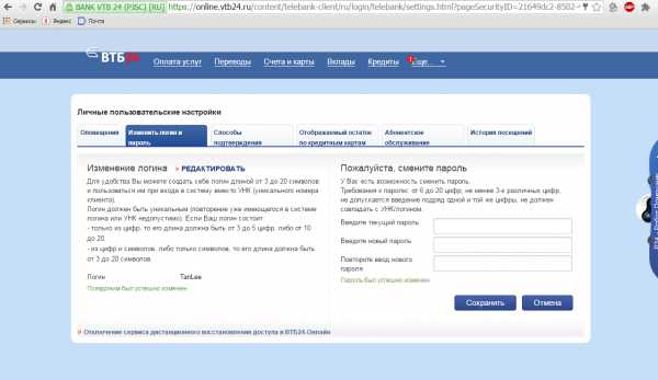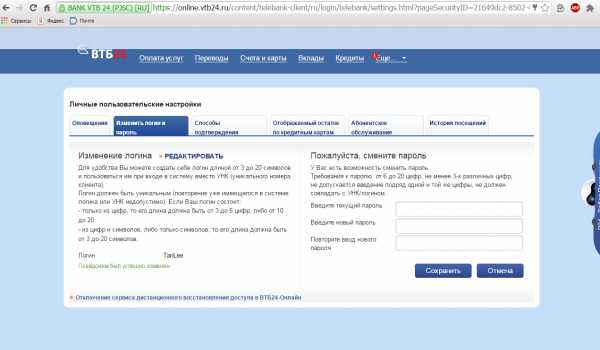 Как осуществлять смену логина/пароля пользователя в личном кабинете ВТБ24 Телебанк