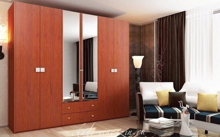 Преобразите свою комнату с помощью этой прекрасной инсталляции! Этот массивный четырехдверный шкаф-купе может с легкостью вместить всю вашу одежду — повседневную и модную.