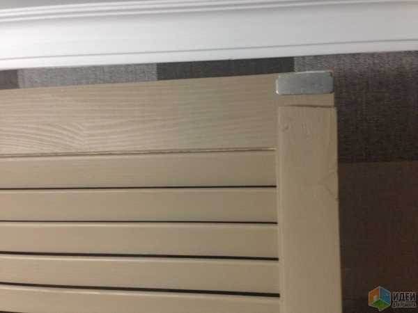1.К полосам из ДСП, компенсирующим разницу высоты помещения и дверок, прикрепляют на шкантах треугольные детали, в которые будут установлены светильники.
