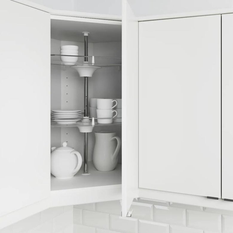 Еще один разумный вариант — установить выдвижную кухонную корзину, чтобы вам было легко доставать приборы, посуду или ингредиенты из задней части шкафа. Кроме того, выдвижное решение дает вам больше свободы, под каким углом вы берете различные инструменты или ингредиенты внутри шкафа. Если на вашей кухне есть угловой шкаф, из-за которого вам трудно достать до предметов сзади, поворотная кухонная корзина — это простое, но очень полезное решение, которое поможет вам легко добраться до всего, что вам нужно в шкафу.