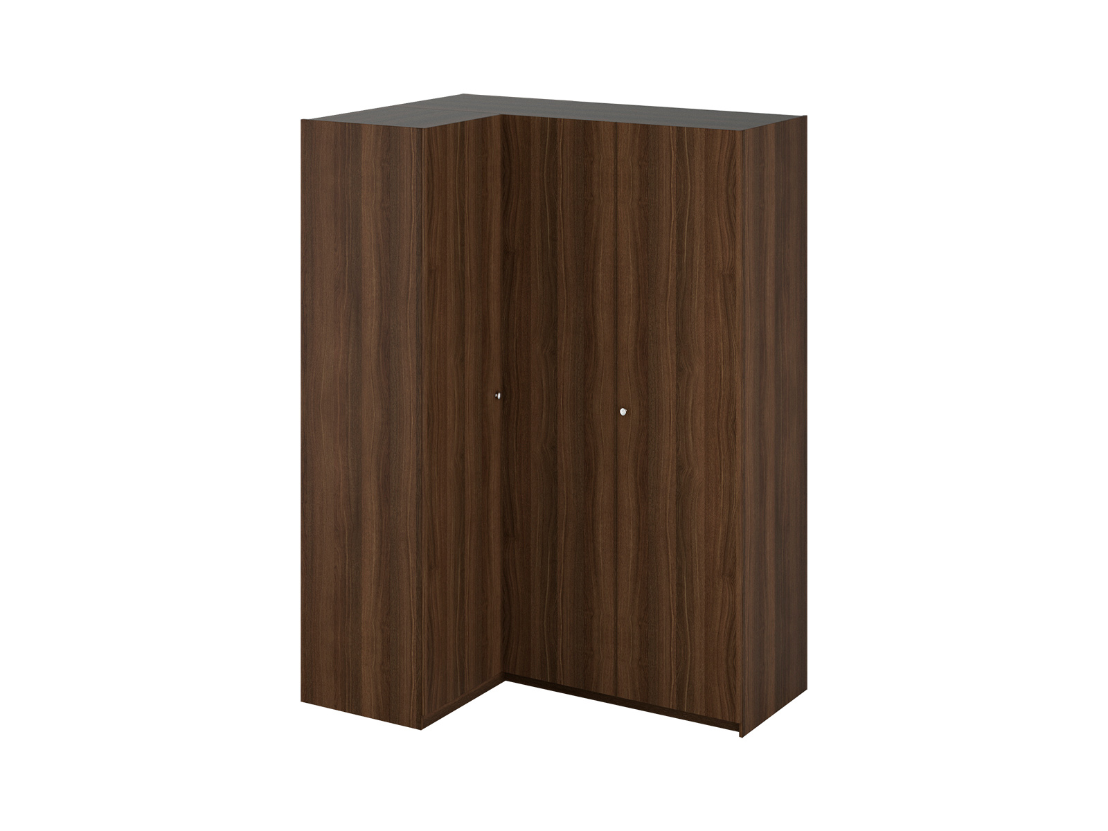 Чаще всего они оснащены двумя отделами со штангами, в то время как отсеки с полками располагаются по бокам. Г-образный шкаф бывает снабжен сбоку полками с открытым фасадом.