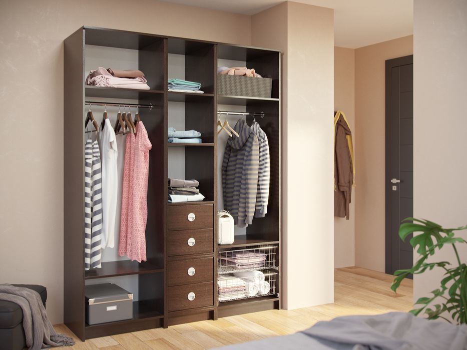 Мини-гардеробные бывают корпусными, стеллажными, угловыми встроенными и модульными. В большинстве случаев внутреннюю часть таких конструкций можно регулировать по своему усмотрению. Полки и ящики в них могут быть как открытыми, так и изолированными.