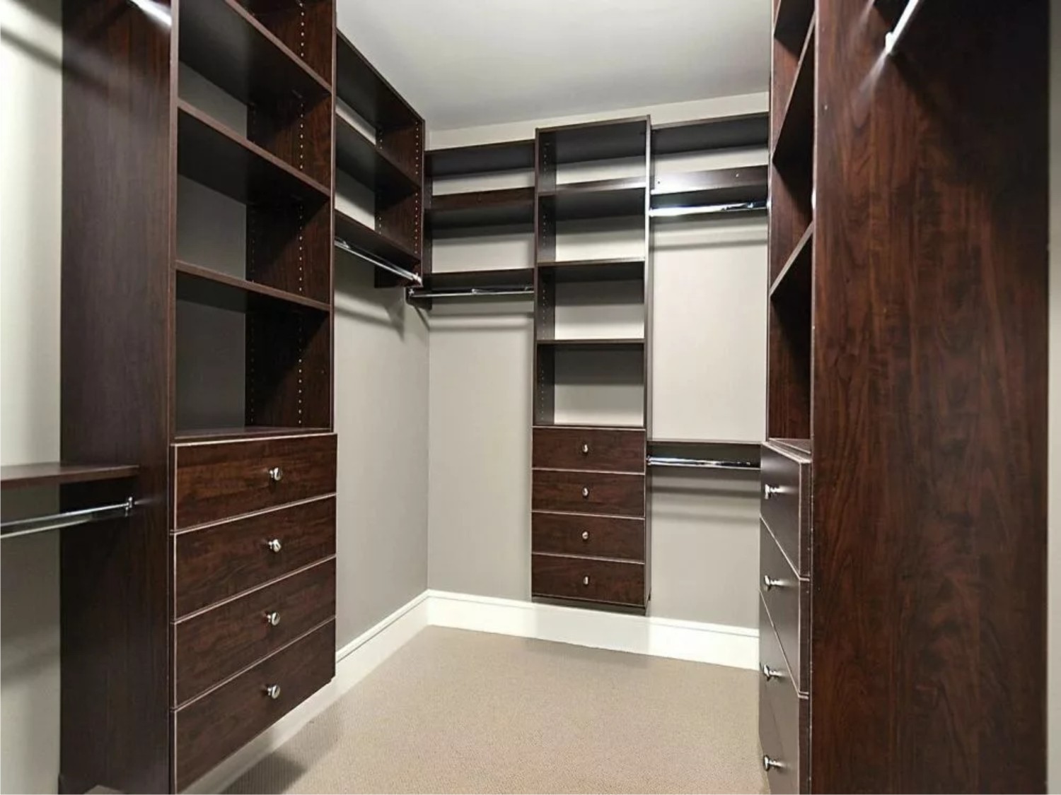 П-образную конструкцию отделяют дверьми.Гардеробные шкафы – это настоящие находки для грамотного и организованного хранения одежды, обуви и различных аксессуаров.