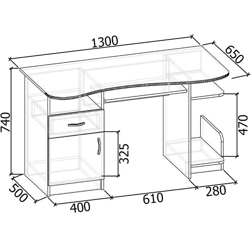 Всех этих положительных качеств можно добиться только за счет правильных размеров. Компьютерные столы размеры имеют следующие: глубина – 400 мм, длина — 650 мм, длина направляющих – 350 мм.