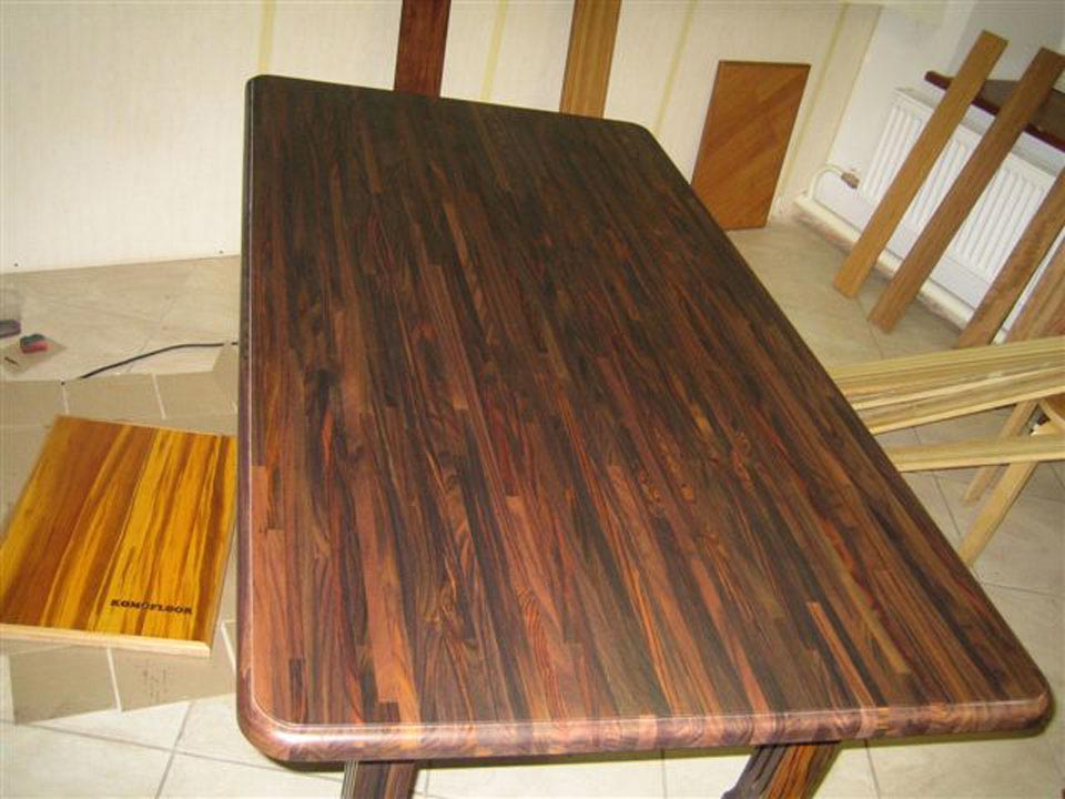 У столешниц из ламелей есть два преимущества: в их дизайне можно комбинировать разные породы дерева, а из-за низкого внутреннего напряжения древесных волокон риск, что столешница деформируется, невысок.