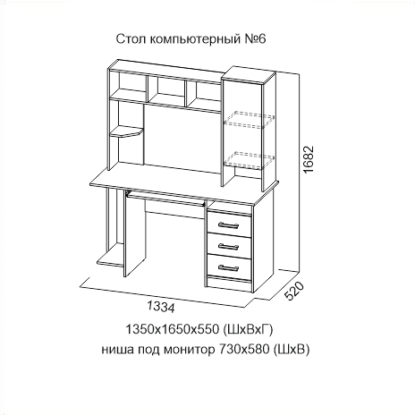 Их ширина должна быть равной ширине стола, высота 160-180 см. На этой высоте можно расположить 1 или 2 полки для мелких вещей. Внизу отводится место под системный блок. Для удобства можно расположить пару ящиков или полок.