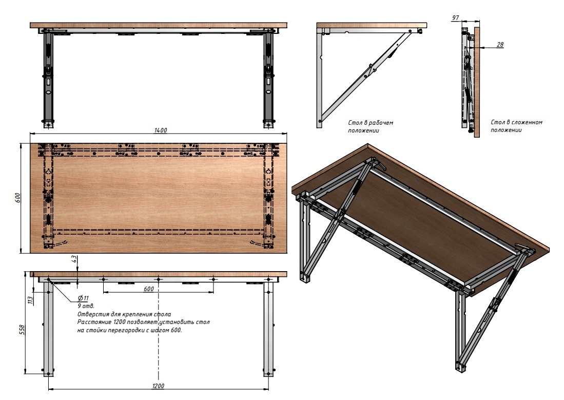 В общем, вариантов складных столов великое множество, в этой статье представлено несколько десятков самодельных конструкций для разных случаев. Складные, откидные, для дома, уличные на веранду дачи и переносные для отдыха на природе. Все представленные складные столы сделаны своими руками. Как именно, смотрите на чертежах и пошаговых фото, которые авторы выложили в интеренете.