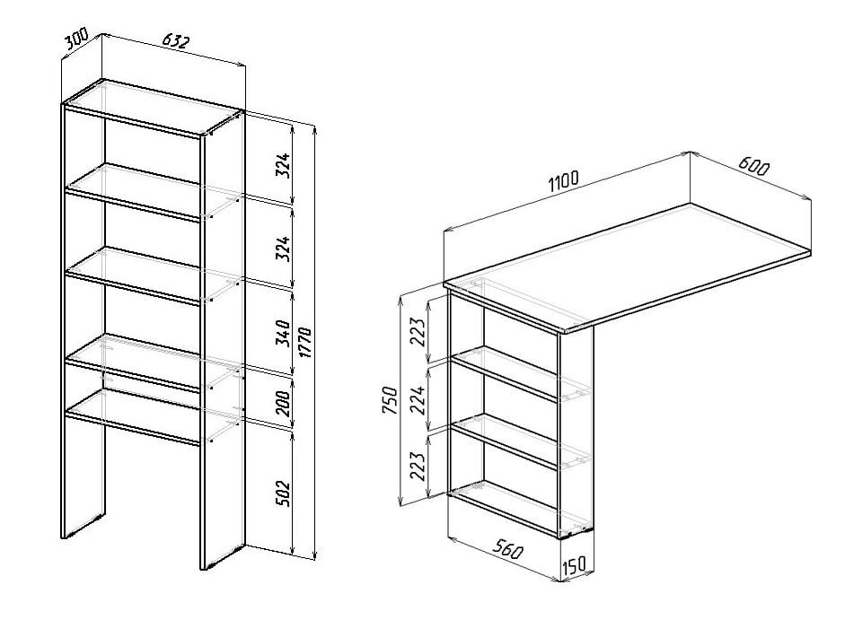— отмерить и отметить на внешней стороне каждой ножки стола расстояние, на котором будет установлена полка (можно на любом уровне,