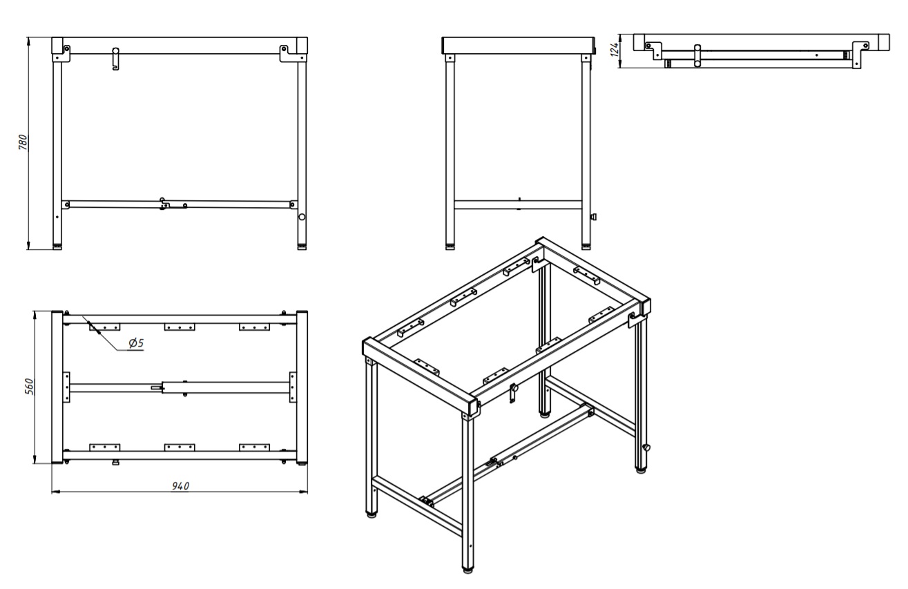 5. Перевернуть собранный каркас стола и поставить его на ножки.