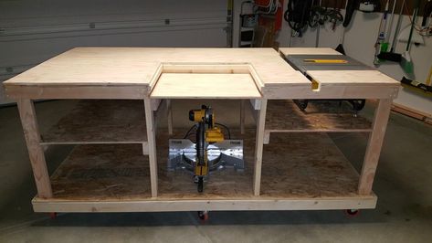 Получите чертежи верстака Ben’s DIY для торцовочной пилы/настольной пилы на Etsy за 15 долларов.