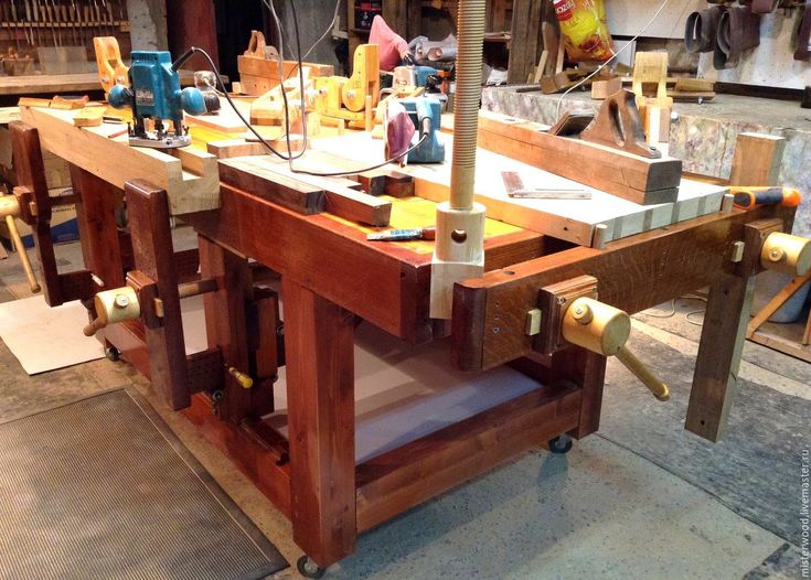 Они располагаются под столешницей. Полки для инструментов важно располагать так, чтобы до них легко было дотянуться одной рукой, не отходя от стола. Именно поэтому их удобно разместить внизу, а не в шкафу рядом.Создать столярный стол своими руками, несмотря на все его особенности, довольно просто. Для этого необходимо: