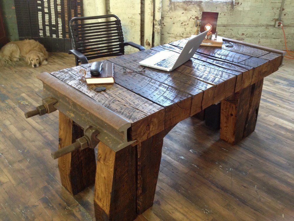 Еще один вариант необычного столикаНапример, если стол из бруса стоит во дворе на даче, можно не переживать за его сохранность в отсутствие хозяев – под мышкой такое изделие не унесешь. Он прекрасно дополнит и подчеркнет брутальность интерьера загородного дома в деревенском или охотничьем стиле.