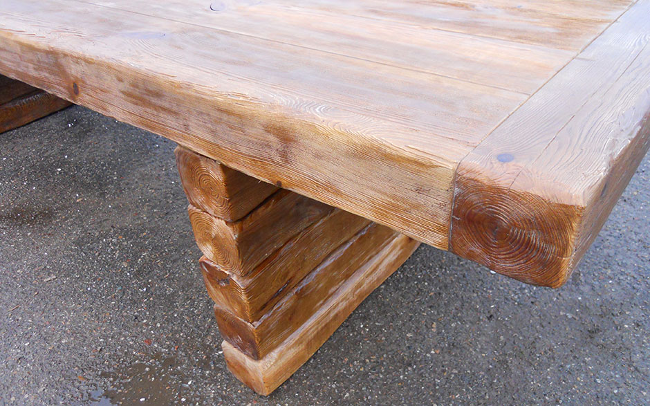 Массивный стол из брусаОдним словом, если вам нужен такой стол, не тратьте время на его поиски в магазинах – там вы вряд ли найдете подходящую модель.