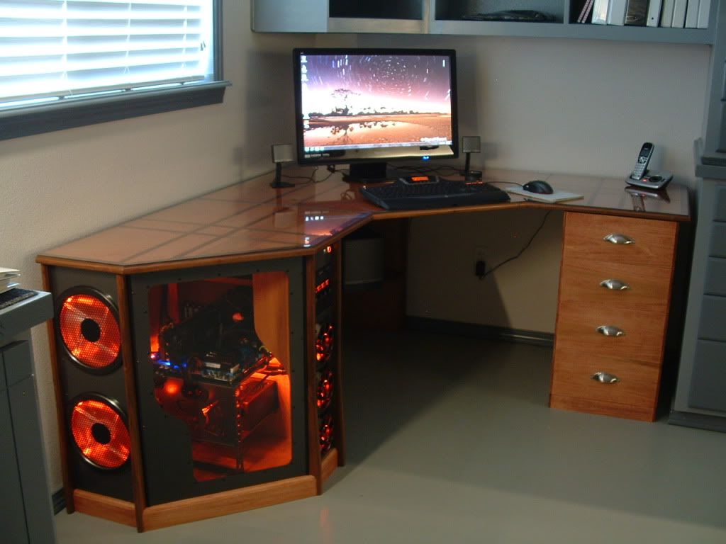 Создайте угловой игровой стол, который будет использовать пространство и в то же время будет удобной зоной для работы или игр. И если вам это нужно для офисного использования, это просто идеально. Шкаф для процессорного блока и отдельные секции для других блоков — идеальное решение для небольшого дома.