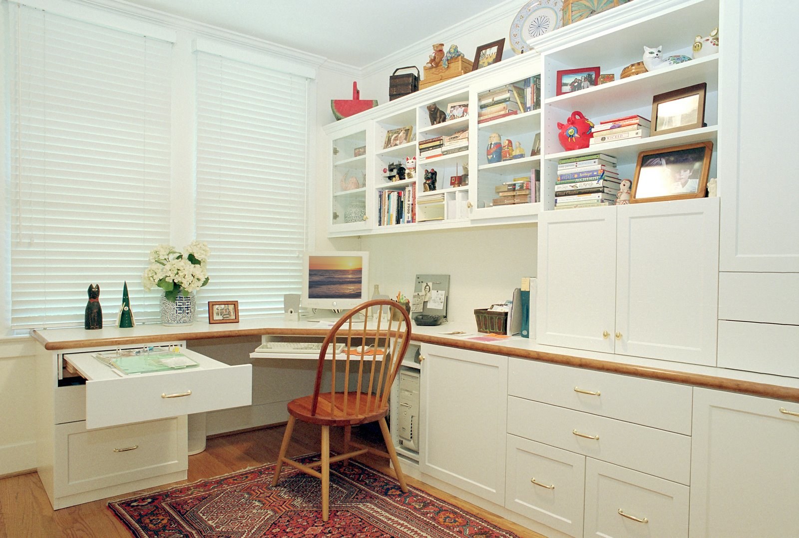 При выборе письменного стола необходимо учитывать несколько факторов. Для занятий, требующих сильного естественного освещения, можно поставить стол лицом к окну. Планировка стола для более легкой учебной деятельности может быть обращена к стене с окном сбоку и увенчана различными полками. Представительная стойка для приема гостей обращена в сторону от окна и расположена ближе к центру комнаты.