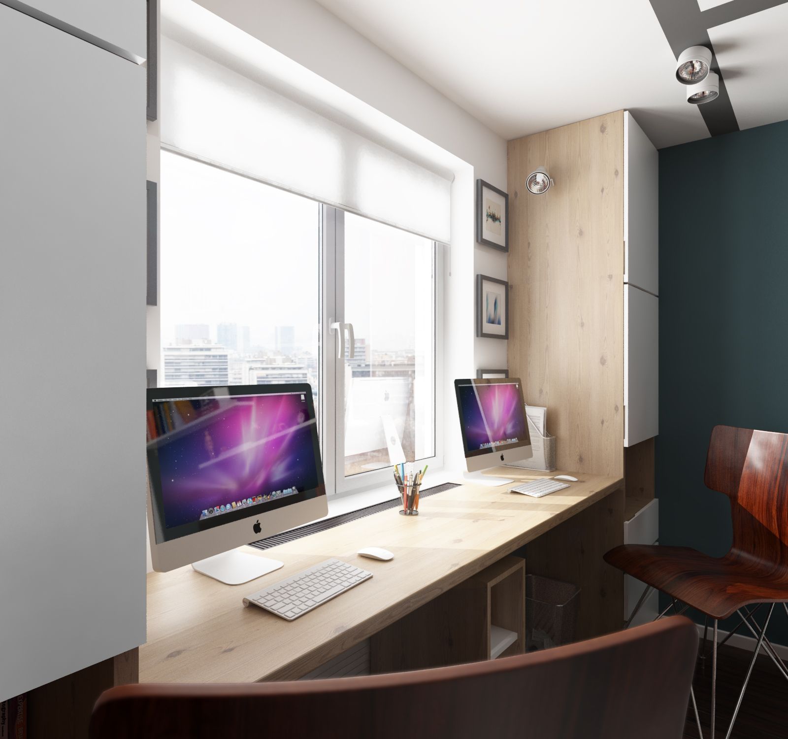 Следующим оптимальным положением будет ваш стол лицом к стене (а не прямо к ней) и окном сбоку. В этой комнате, несмотря на блики, солнечный свет не будет падать прямо вам в глаза, из-за чего вы не сможете работать!