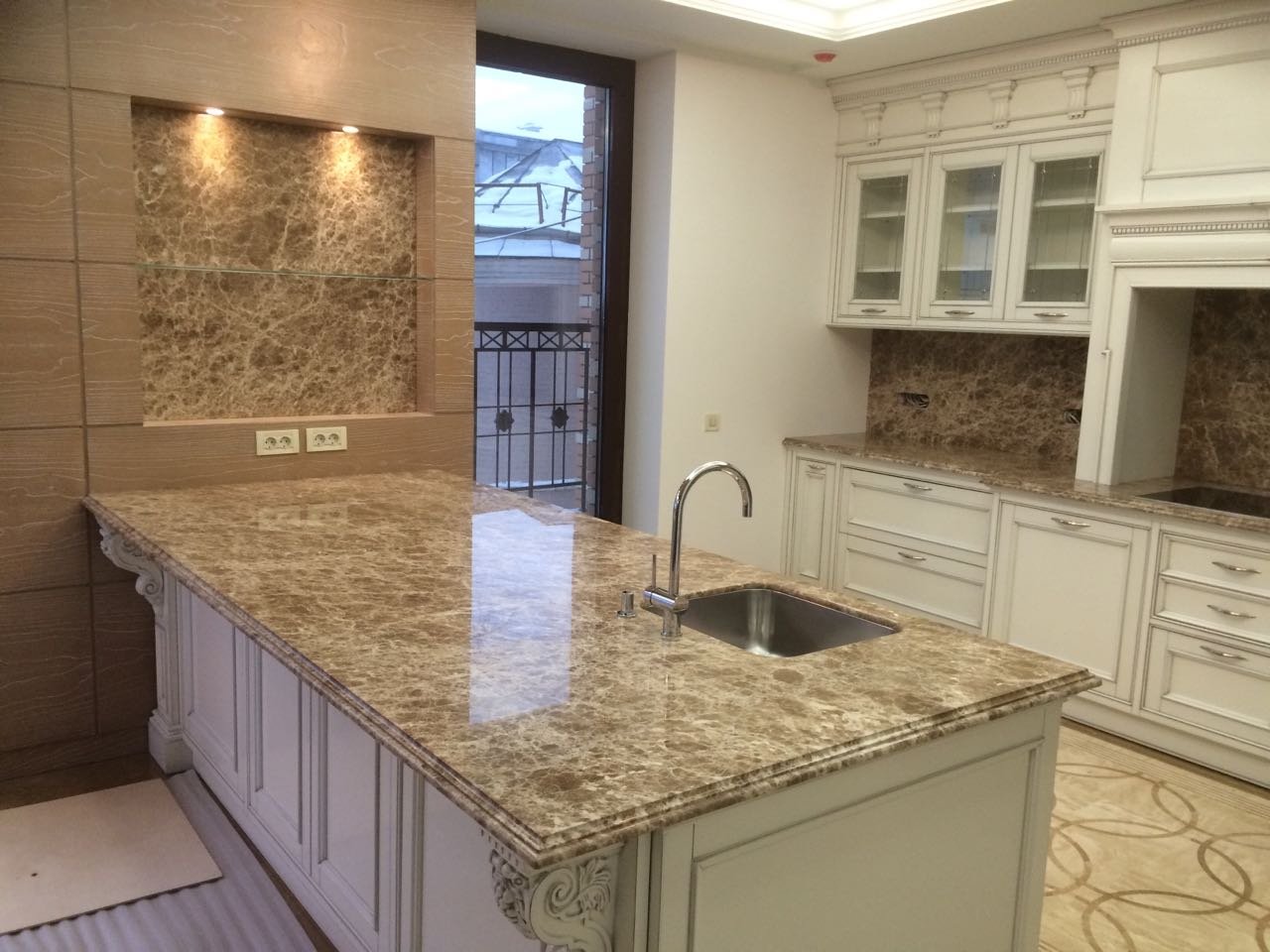 Кухонные столешницы из камня популярны во всем мире. Их заказывают и покупают как в Европе, так и в США; как для собственной кухни, так и для кухонь ресторанов и кафе.