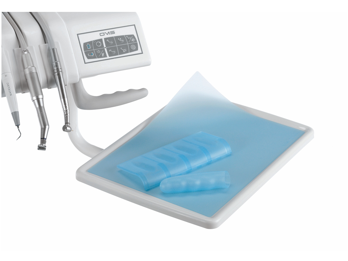 4022. Дезинфекцию поверхностей предметов, находящихся в зоне лечения (столик для инструментов, кнопки управления, клавиатура, воздушный пистолет, светильник, плевательница, подголовник и подлокотники стоматологического кресла) проводят после каждого пациента. Для этих целей используют дезинфицирующие средства, разрешенные к применению в присутствии пациентов, обладающие широким спектром антимикробного действия.