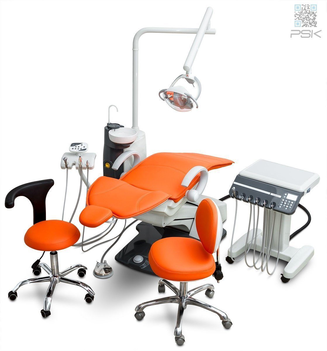 Установка стоматологическая QL2028 (Pragmatic) с нижней подачей с мягкой обивкой, КОМПЛЕКТ 2 СТУЛАКРЕСЛО ПАЦИЕНТА:Мягкая обивка из кожзаменителяСпециальное положение кресла для сплёвыванияАварийное положение креслаЛевый подлокотникМультифункциональная педаль управленияСВЕТОДИОДНЫЙ ОПЕРАЦИОННЫЙ СВЕТИЛЬНИК с регулируемой яркостью, жёлтым и белым светом, чётким световым пятном, а также очень гибким плечом.