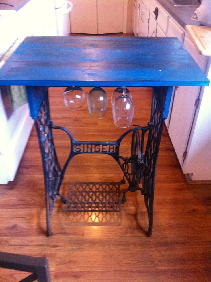 Нам нравятся наши новые столы, и они вдохнули новую жизнь в основания швейных машин Singer. Спасибо Home Depot Canada за помощь в воплощении этой идеи в жизнь.