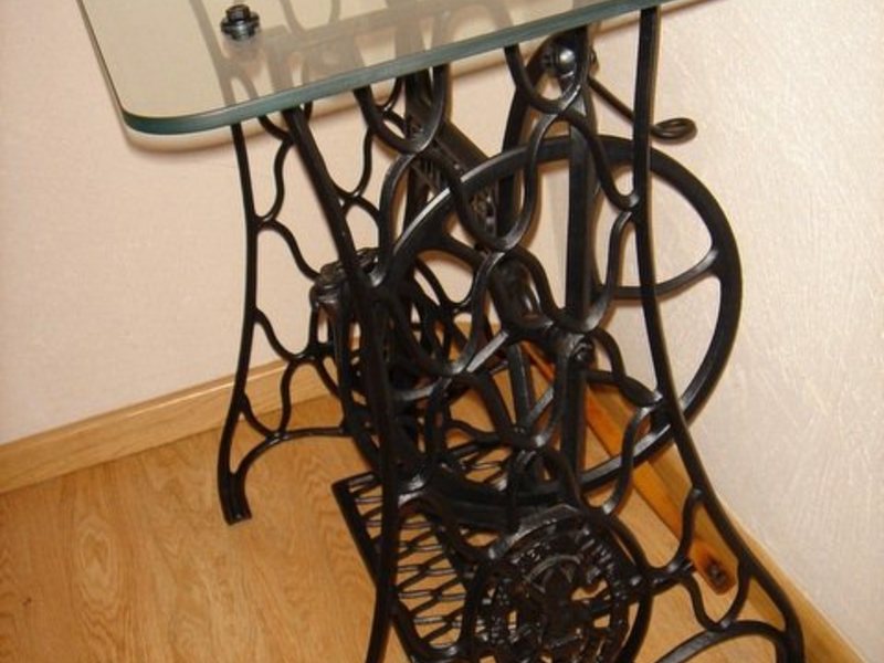 Из основания швейной машинки можно сделать оригинальный столик-консоль.